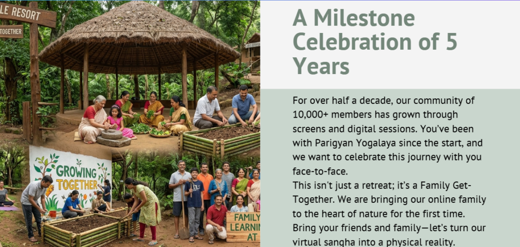 After 5+ years of digital togetherness, let’s finally meet face-to-face. Come, let’s live Yoga together—integrating our hearts, our words, and our deeds in the serene spirit of Goa.